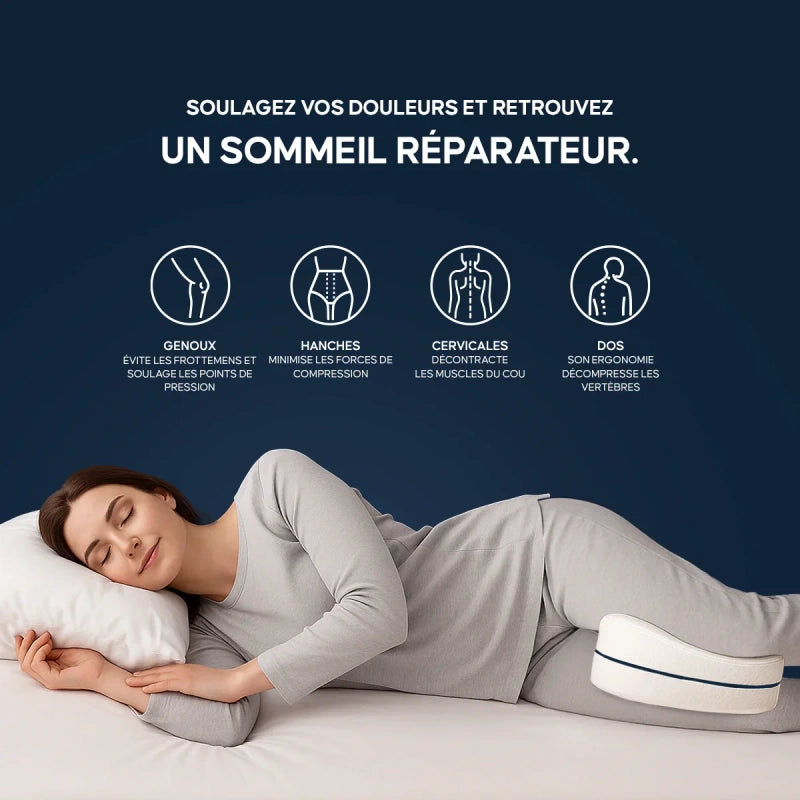 Il assure un alignement naturel de vos genoux et hanches, réduisant ainsi les points de pression pour un confort au réveil plus agréable et une posture nocturne équilibrée.
